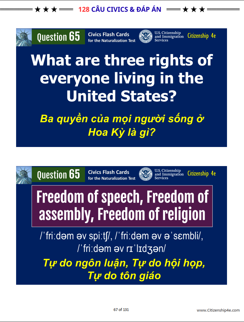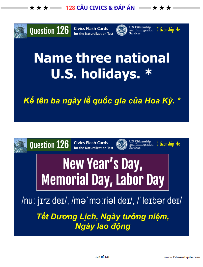 128 CÂU CIVICS CHO THI QUỐC TỊCH MỸ (2025-Theo thứ tự)